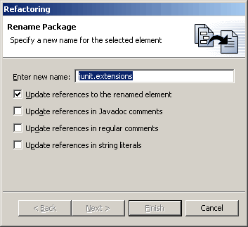 If you want to update Javadoc references to the renamed package, select
