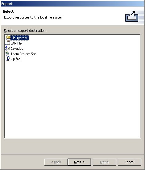 You can add a wizard to the File->Export menu option in the workbench using the org.eclipse.ui.exportWizards extension point. The process for defining the extension and implementing the wizard is similar to org.eclipse.ui.newWizards. The primary difference in the markup is that export wizards do not define or assign categories for the wizards themselves. The wizards appear uncategorized in a wizard dialog.