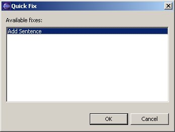 public class ReadmeMarkerResolutionGenerator implements IMarkerResolutionGenerator { public IMarkerResolution[] getResolutions(IMarker marker) { return new IMarkerResolution[] {new AddSentenceResolution()}; } }