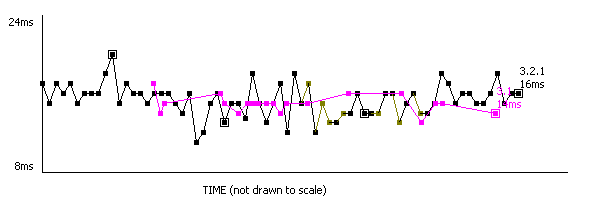Boxed points represent previous releases, milestone builds, current reference and current build.